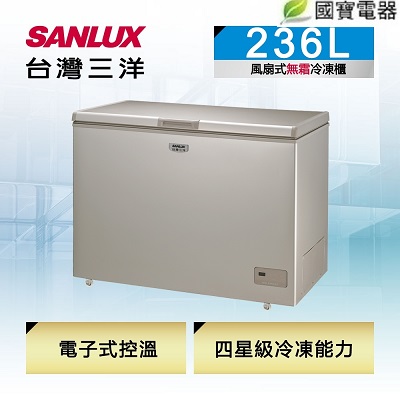 SANLUX台灣三洋 236公升風扇式無霜上掀式冷凍櫃 SCF-236GF
