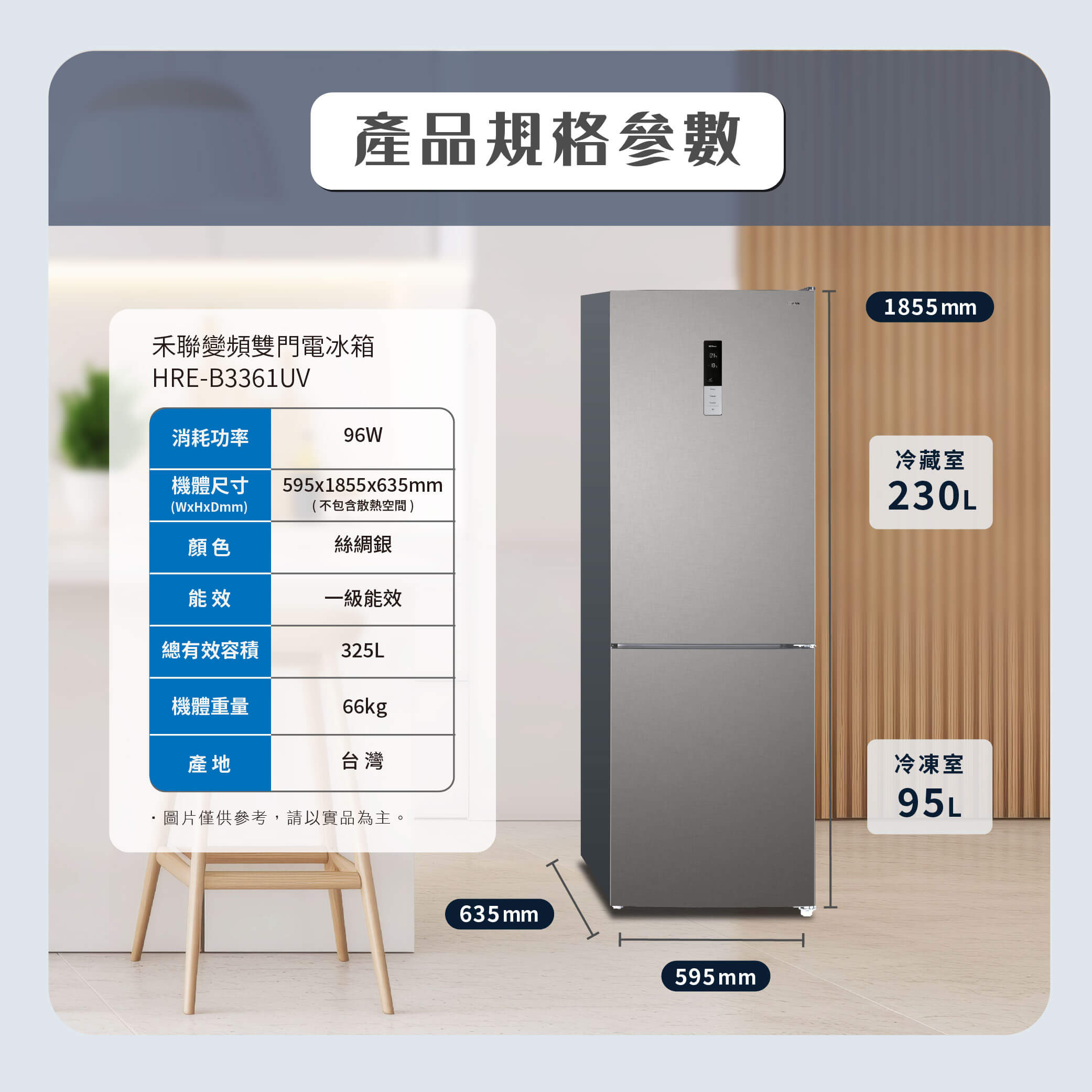 HREAN 禾聯 325公升變頻雙門電冰箱 HRE-B3361UV