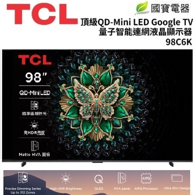 TCL 98吋 頂級 QD-Mini LED Google TV 量子智能連網液晶 98C6K