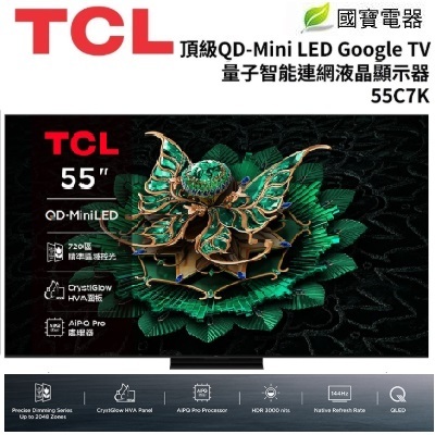 請先詢價 TCL頂級QD-Mini LED Google TV 4K量子智能連網液晶 55C7K